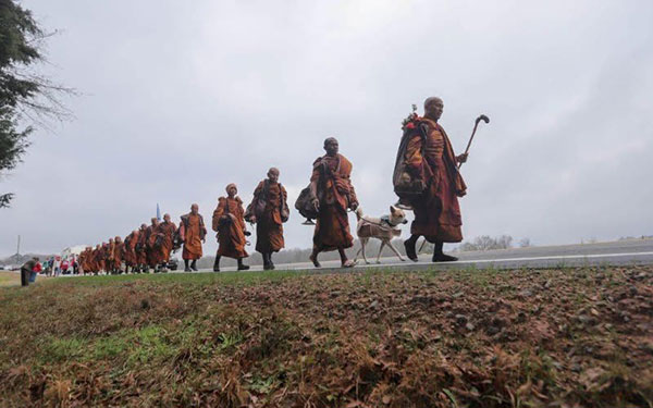 ඉන්දියාවේ සාම පා ගමනින් පසු එයට සහභාගී වූ භික්ෂූන් වහන්සේලා ටෙක්සාස් ප්රාන්තයේ ෆෝර්ට් වර්ත් හි හුවොං ඩාඕ විපස්සනා භාවනා මධ්යස්ථානයේ ආශ්රමයට පැමිණියේ ඇමරිකා එක්සත් ජනපදය තුළ සැතපුම් 2,300ක් තරම් දීර්ඝ වූ සාම පා ගමනක් ඇරඹීමේ අපේක්ෂාවෙනි. මෙයට ආසන්න වශයෙන් භික්ෂූන් වහන්සේලා 19 නමක් පමණ සහභාගී වන්නට නියමිතව සිටි අතර, එයට ආලෝකා ද එක් කර ගන්නට භික්ෂූන් වහන්සේලා තීරණය කළහ.