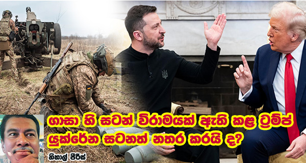ගාසා හි සටන් විරාමයක් ඇති කිරීමට හැකි වූ ආකාරයටම යුක්රේන යුද්ධයටත් යම් විසඳුමක් ලබා දීමට ඔහුට හැකි වේවි ද? මෙය ලෝක දේශපාලනය ගැන උනන්දුව දක්වන කව්රුත් පාහේ මේ දිනවල කුතුහලයෙන් බලා සිටින කාරණයකි. සති කිහිපයකට පෙර ගාසා හි සාම සැලැස්ම ක්රියාත්මක වීම ආරම්භ වූ අවස්ථාවේ ට්රම්ප් ද ප්රකාශ කළේ යුක්රේන යුද්ධය අවසන් කිරීම තමාගේ ඊළග ඉලක්කය බව යි.
