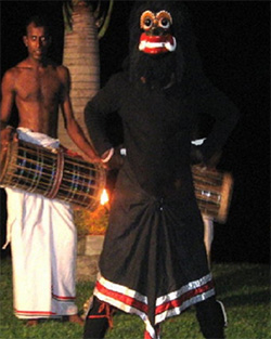 රාත්රී මැදියම පසුවීමත් සමඟ තොවිලයේ ප්රධාන ඇදුරා හෙවත් ගුරුන්නාන්සේගේ ප්රතාපවත් හඬ, එතෙක් බෙර හා මන්ත්ර හඬින් පිරී තිබූ පරිසරයට ඉන් පසු ආරෝපණය වූ නිහඬතාව සුනු විසුණු කරමින් දසත පැතිර යනු ඇසෙයි. එහෙත් තොවිලයේ ආතුර පන්දලම දෙසින් දක්නට ලැබෙන ඒ අමුතු රූපයෙන් කිසිදු හාවක් හූවක් නැත. ඒ, මෙම තොවිලය හා සම්බන්ධ යක්ෂයාගේ පැමිණීමේ අවස්ථාවයි. එම භූමිකාව නිරූපණය කරනුයේ ද පහතරට ශාන්තිකර්ම සම්බන්ධ මනා පරිචයක් සහිත නර්තන ශිල්පියෙකි.යක්ෂ මුහුණකින් හා කාල වර්ණ දේහයකින් යුතු අමනුෂ්යයකු බව අතිශයින් පැහැදිලි ය.