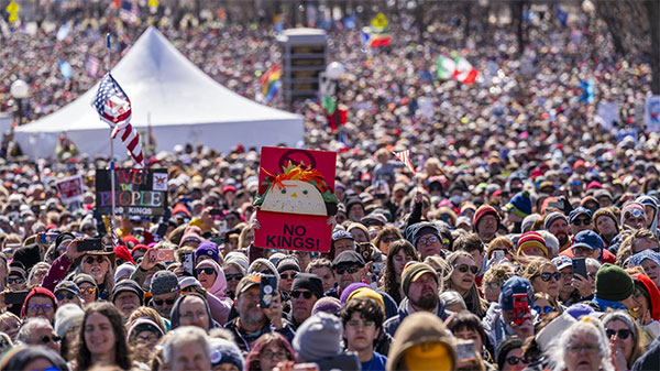 ඇමරිකානු ඉතිහාසයේ වාර්තා වූ විශාලතම එක්දින අවිහිංසාවාදී විරෝධතාව සනිටුහන් කරමින්, ‘රජුන් එපා’ (No Kings) විරෝධතාවල තෙවන අදියර ඉකුත් මාර්තු 28 වන සෙනසුරාදා ඇමරිකා එක්සත් ජනපදය ඇතුළු ලොව පුරා නගර රැසකදී අති උත්කර්ෂවත් අන්දමින් පැවැත්විණි. සංවිධායකයින් ප්රකාශ කරන පරිදි, ඇමරිකාවේ ප්රාන්ත 50 ම ආවරණය වන පරිදි සහ ලොව පුරා රටවල් 16 ක නගර 3,300 කට අධික සංඛ්යාවක පැවැති මෙම විරෝධතාව සඳහා පුද්ගලයන් මිලියන 8 කට අධික පිරිසක් සහභාගී වී ඇත. මෙය මීට පෙර 2025 වසරේ ජුනි සහ ඔක්තෝබර් මාසවල පැවැති විරෝධතාවලටත් වඩා ඉහළ ජන සහභාගීත්වයක් පෙන්නුම් කළ අවස්ථාවක් ලෙස ඉතිහාසයට එක් වේ.